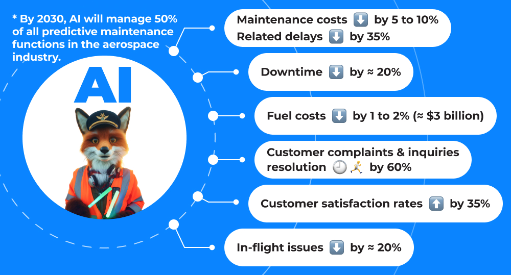 - All in all, by 2030, AI is expected to manage 50% of all predictive maintenance functions in the aerospace industry.