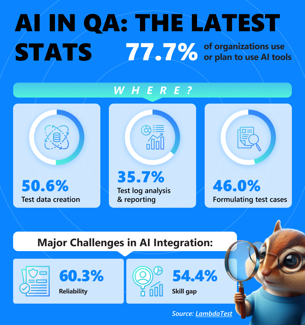 Myths dispelled and the truth revealed. AI turned out a real dark horse, didn't it? Yet, you still shouldn't let your guard down before bringing new tech into your workflow. First, let's explore use cases where QA & testing with AI can take some weight off your team's shoulders, and then consider a few practical strategies for its implementation.