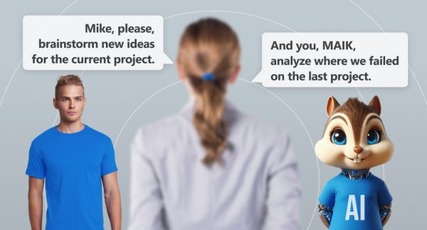 Woman boss talking to human and AI quality assurance specialists about their duties