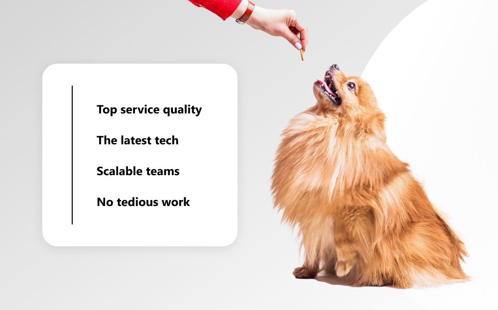 - The latest tech. Outsourcing services provide global access to a vast pool of the newest tech competencies. You do not have to search for hiring local professionals in front-end or back-end development, AI/ML engineers, data scientists, or other specialists to provide a robust operation of your application.