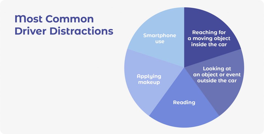 The study conducted by the National Highway Traffic Safety Administration (NHTSA) and the Virginia Tech Transportation Institute (VTTI) shows that 80% of crashes and 65% of near-crash situations involve some kind of driver distraction which takes place within three seconds before the accident on most occasions.