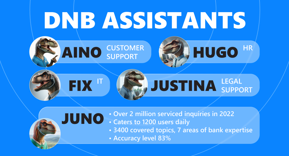 A truly fascinating use case of conversational AI is presented by Norway's largest bank DNB. They have not one, but five assistants that take care of both customers and employees.