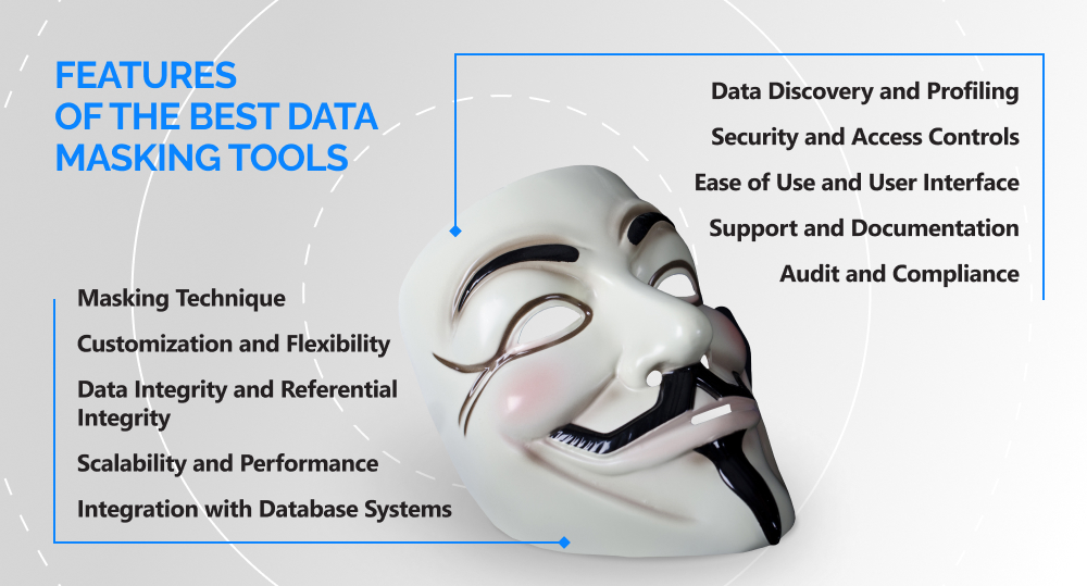 So, there are a lot of data masking tools: for free download or commercial. Choosing the right instrument depends on your requirements, such as the desired masking techniques, scalability, integration capabilities, and available resources. Let's look at the features that a good data masking solution should have.