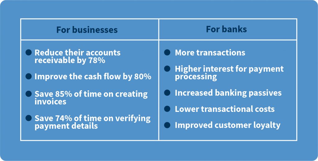 Some banks will be able to benefit more than others, but it’s a great opportunity for all banks to make B2B financial operations faster and more convenient.