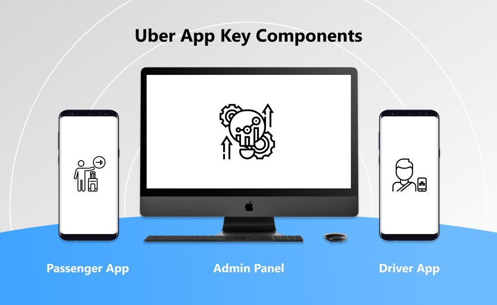 If you are thinking of creating an app like Uber, you should analyze its structure. The Uber app includes three key elements: an app for drivers, an app for passengers, and a web-based admin panel that connects these two individual apps into one fully functioning system. Each element contains basic features and functionalities. Let's define them!