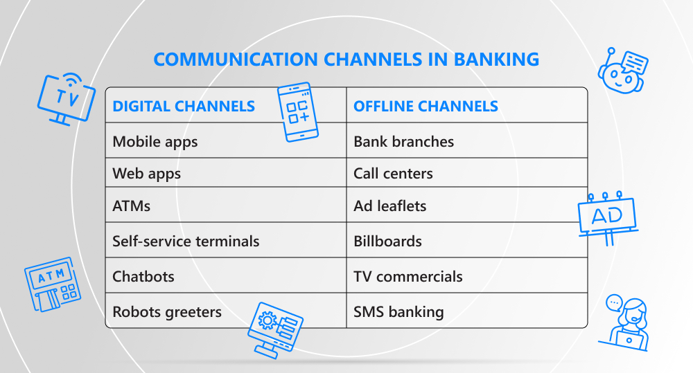 As already mentioned, in omnichannel, a bank interacts with customers through multiple channels. So, what are the major ones?