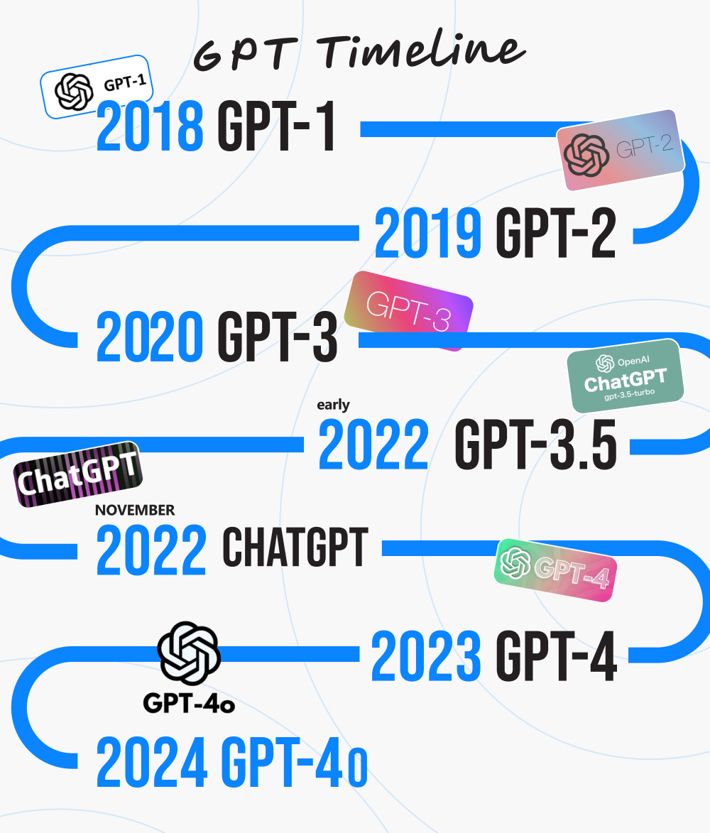 Infographics that demonstrates GPT timeline.