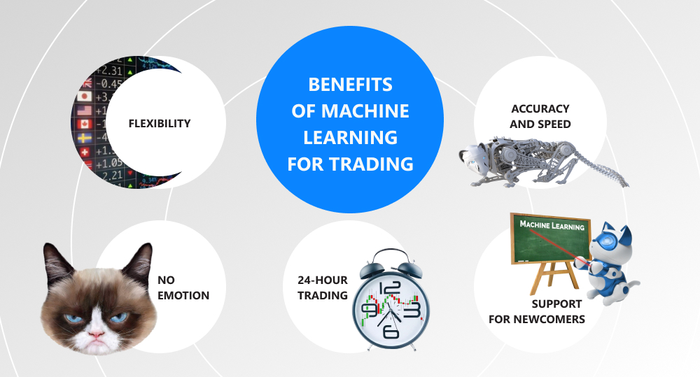 By the way, traders have long been using trading advisors or mathematical algorithms that can predict the behavior of your assets with high accuracy. This process is called algorithmic trading, which works according to certain algorithms. By developing trading strategies driven by AI and machine learning, the market participants have more chances to make the right trading decisions and complete a profitable transaction. Why? To answer this question, let's see how you can leverage AI and machine learning for trading: