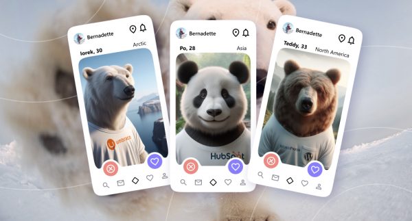 Three mobile screens with polar bear, panda, and brown bear illustrating Umbraco, HubSpot, and WordPress as CMS for eCommerce