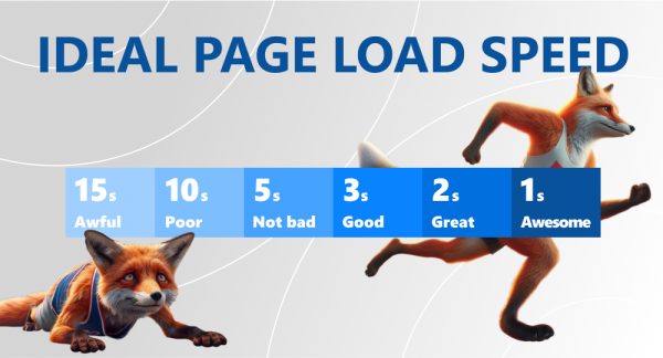 Infographics of ideal page load speed with exhausted fox and fox runner