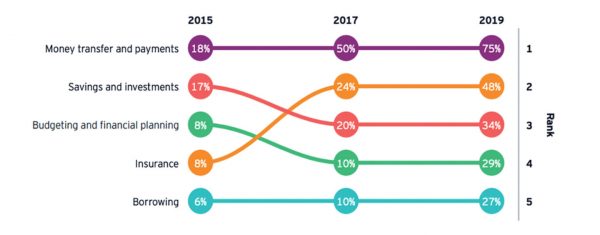There are some other studies to support this idea. According to Fintech Singapore 2019 research, the global consumer adoption of fintech services is rising in the last couple of years: according to the study, the adoption of budgeting and financial planning started from 8% in 2015, then slowly grew to 10% in 2017 and finally is making 29% in 2019.