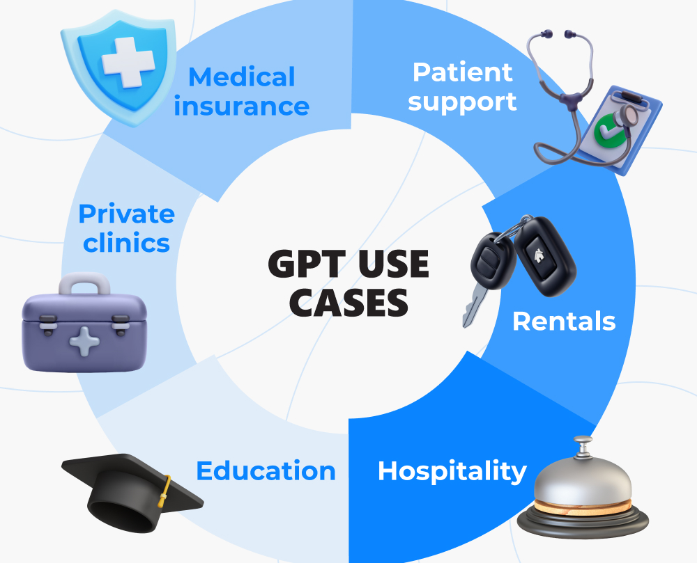 - Private clinics. An example of how efficient the medical field can become if you merge technology with existing processes. GPT assistants can book patients' appointments, provide information about doctors and services, and send notifications to remind of upcoming visits and procedures.