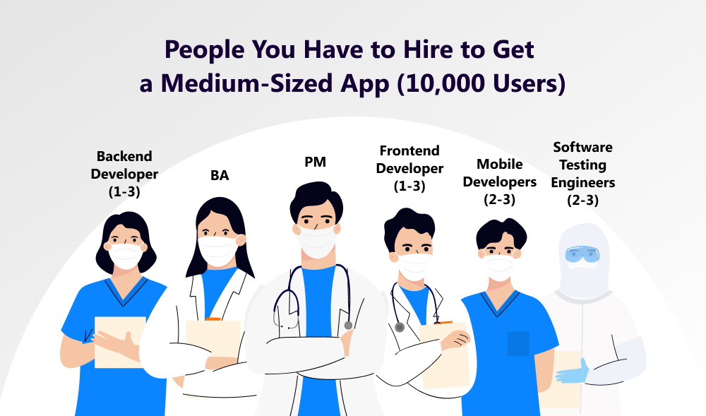 Thus, to hire a team of 10 with $3,000-5,000/month per talent, you already get about $50,000 in the first month, while developing a large-scale app may take up to 10 months, which is $500,000! The good news is that with a nice team you can cut the costs to some extent (read this to find out how).