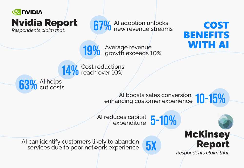 When AI automates repetitive tasks, optimizes resources, minimizes downtime, and predicts traffic anomalies, all you'll notice is lower operational costs and the desired profitability. Recent statistics only bolster these claims.