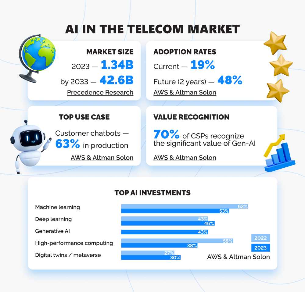 How’s the adaptation going? Let's explore the current state and key prospects for artificial intelligence in the telecommunication market: