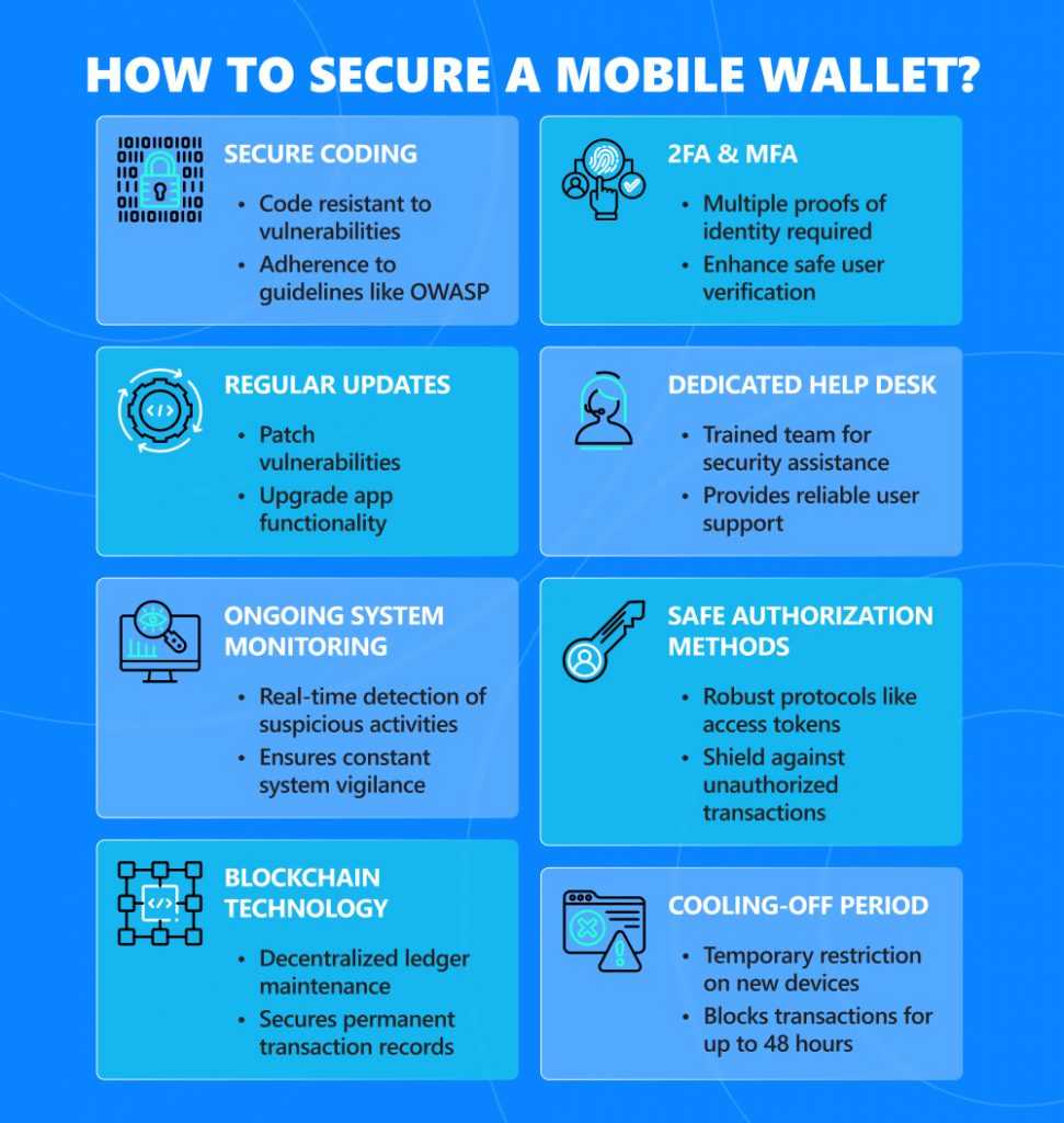 Regular updates. They are necessary for patching vulnerabilities and upgrading functionality. This applies both to the virtual wallet app and its underlying infrastructure.
