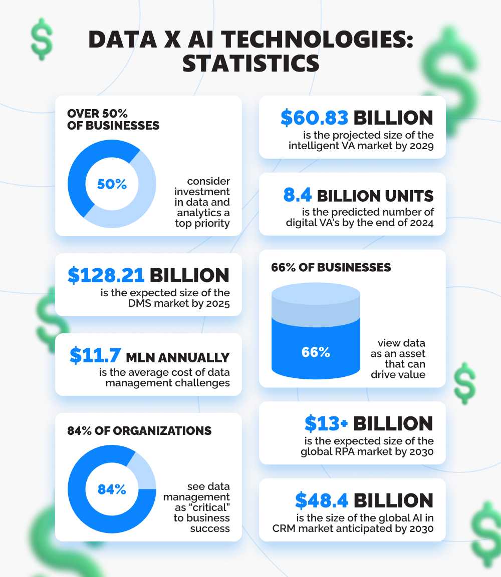 Such cases prove that AI software like GPT assistants and data analysis tools are a perfect duo. Statista backs us up: a 2023 research found that the majority of businesses consider investment in data and analytics a top priority.
