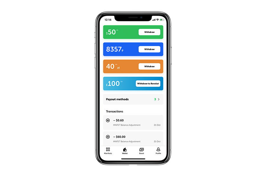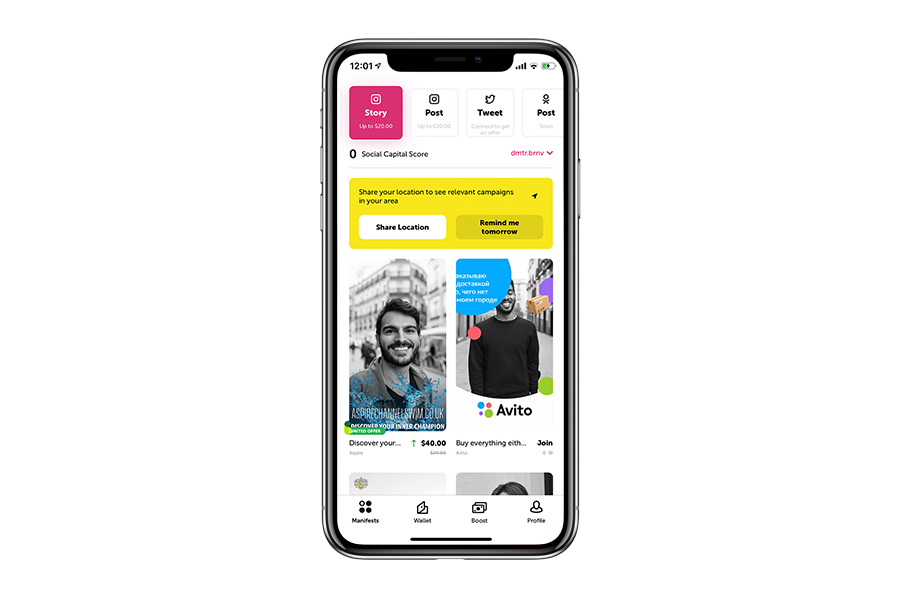MNFST is a crowd promotion platform, where users create and share engaging branded content. For example, users recommend their favorite products and services, upcoming events or charity initiatives and get rewarded by brands. Currently, the service has 30K daily active users and 6M daily views.