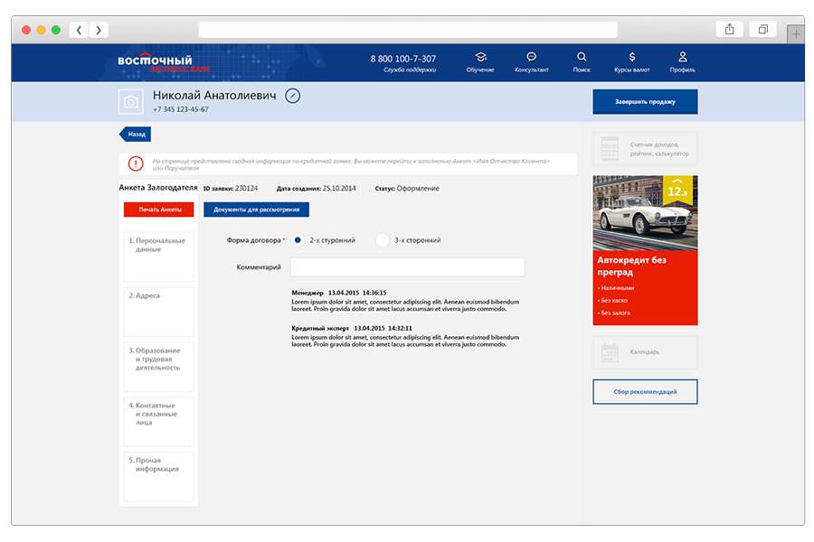 Enables individual users to submit applications for cash loans, as well as helping to create bank’s agent network that consists of loan vendors, points of sale and bank partner companies. In addition, the system provides a toolkit for loan managers working with loans to individuals at points of sales.